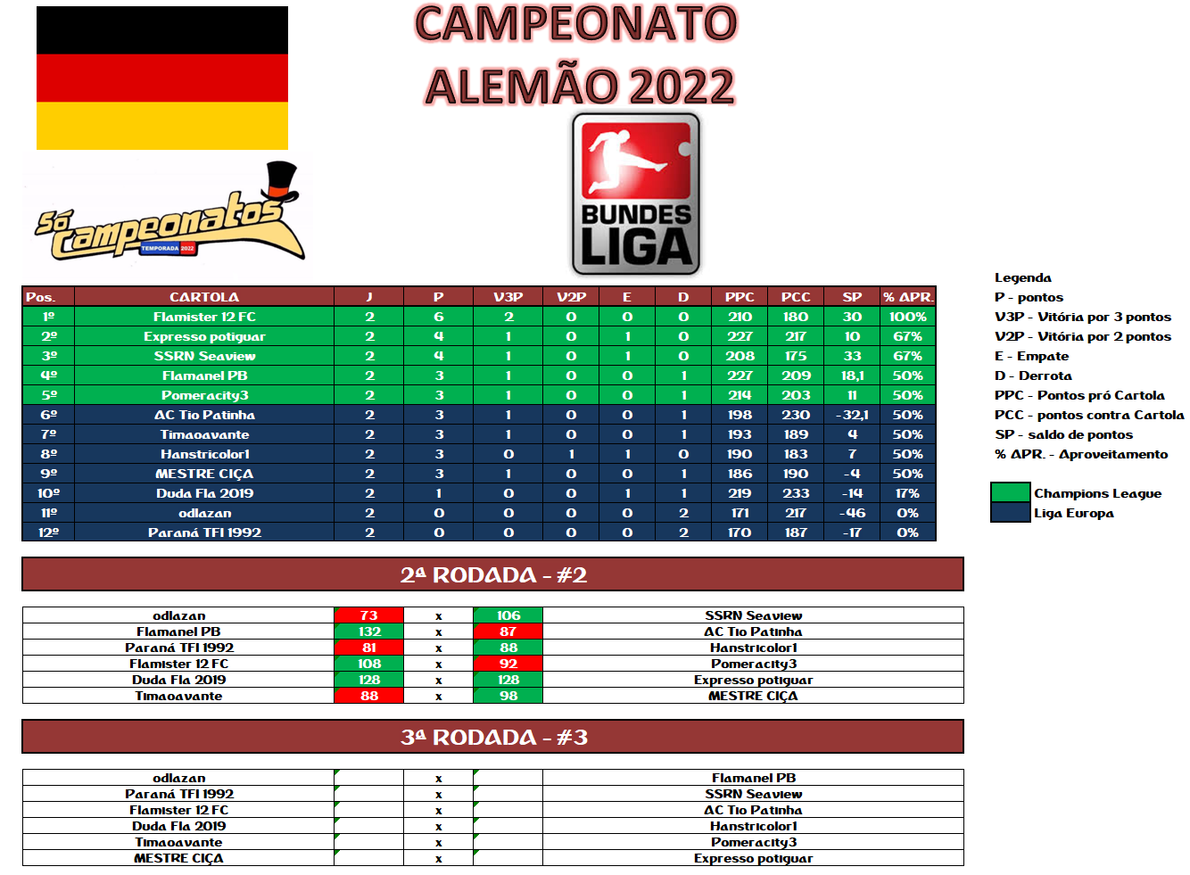 CLASSIFICAÇÃO CAMPEONATO ALEMÃO