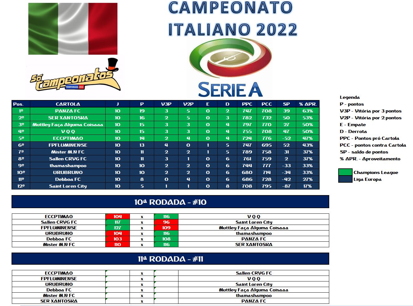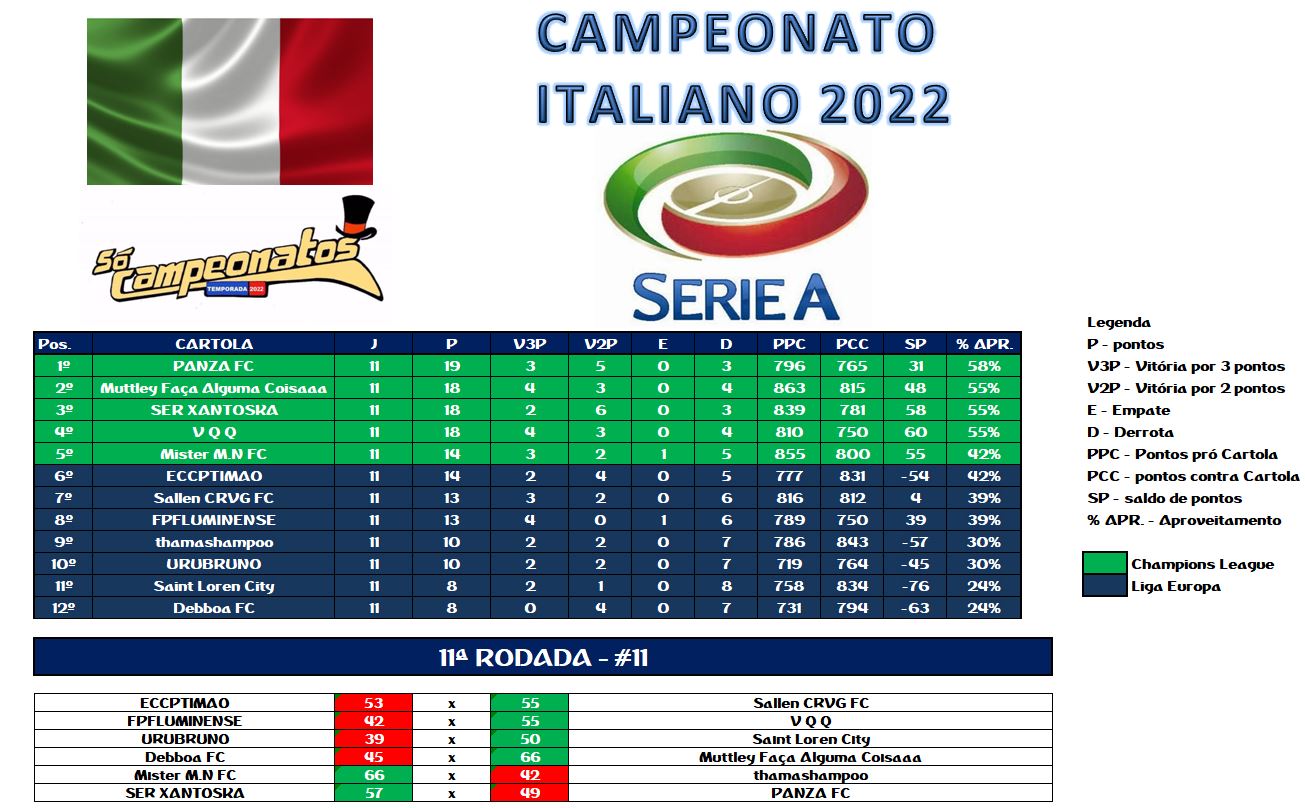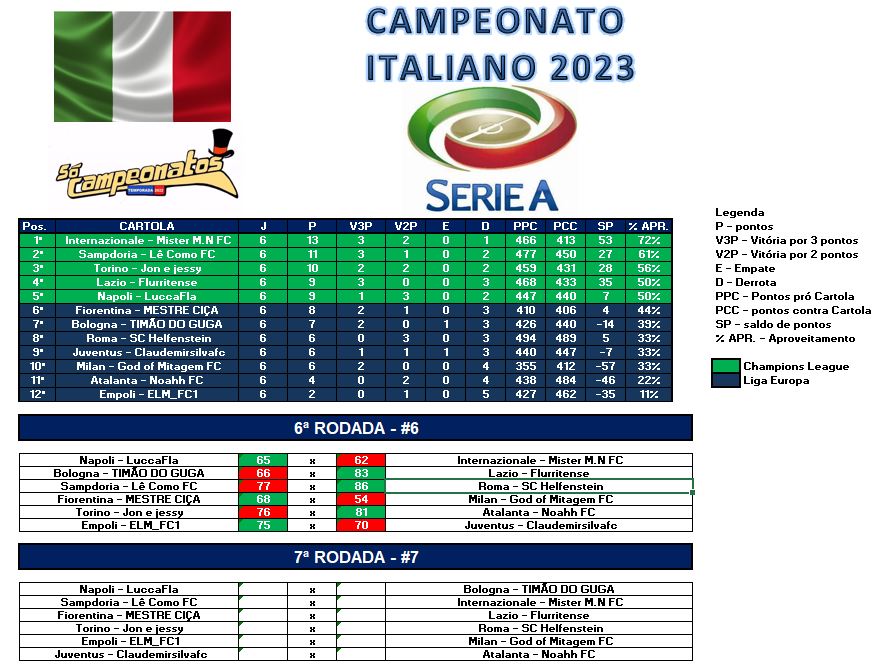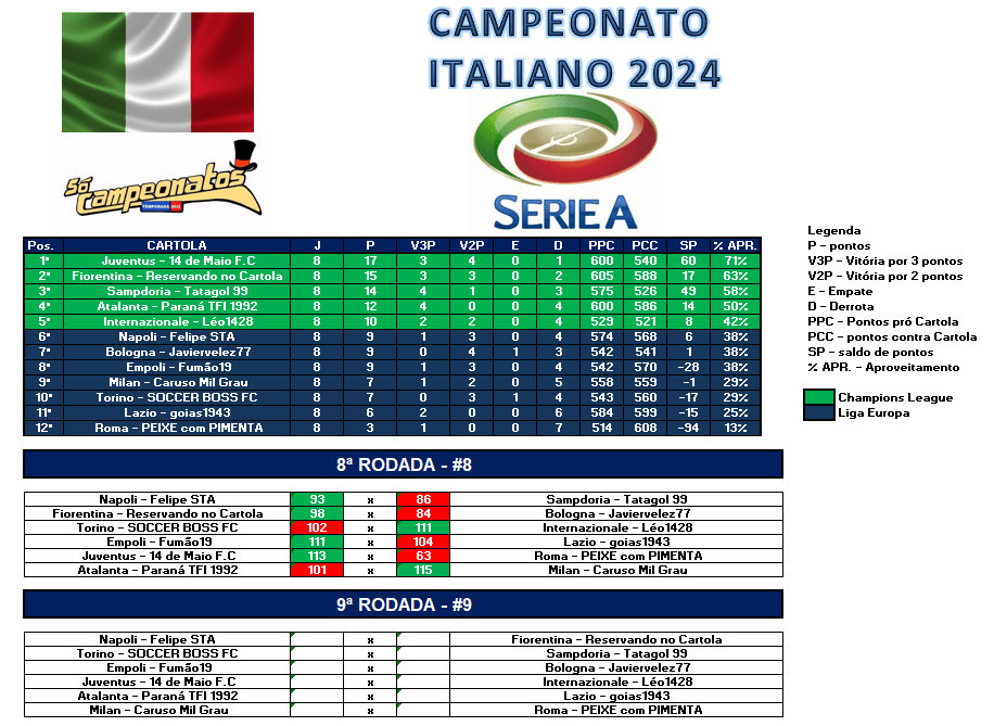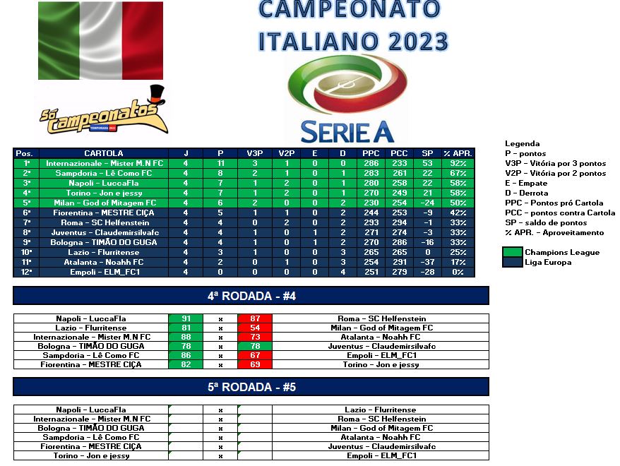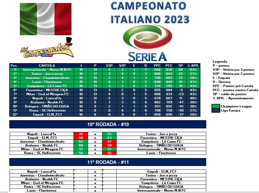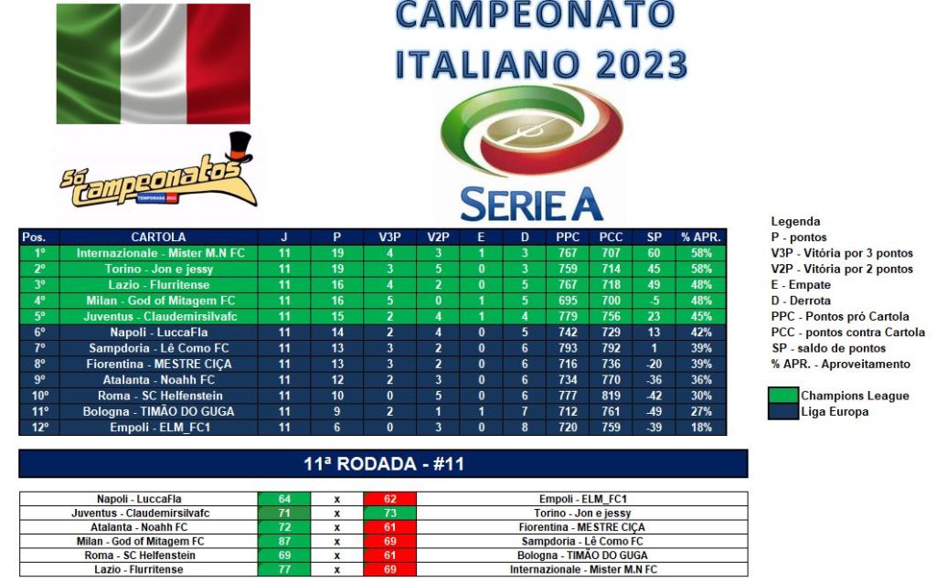 TABELA CAMPEONATO ITALIANO