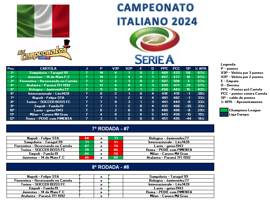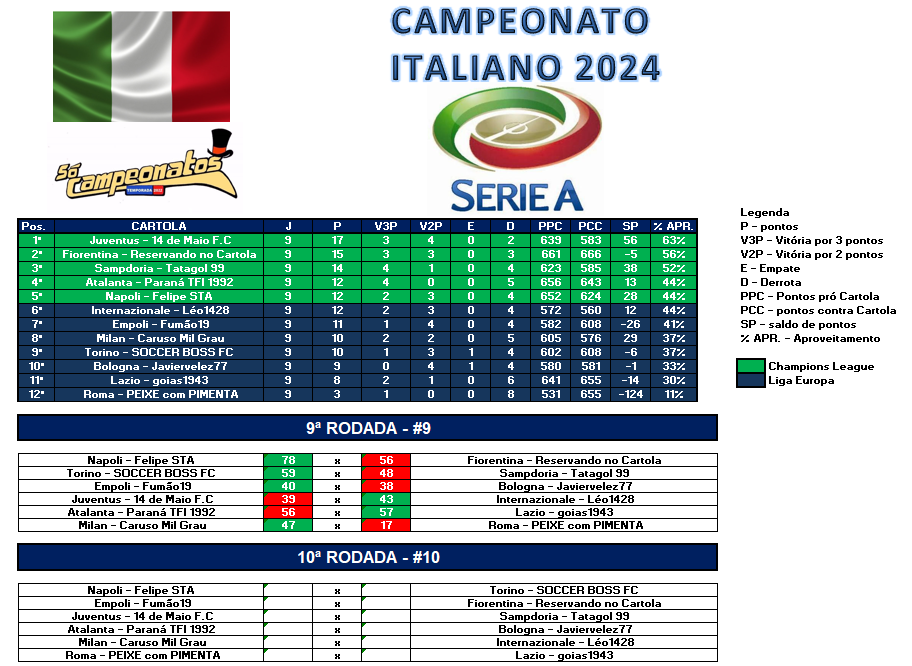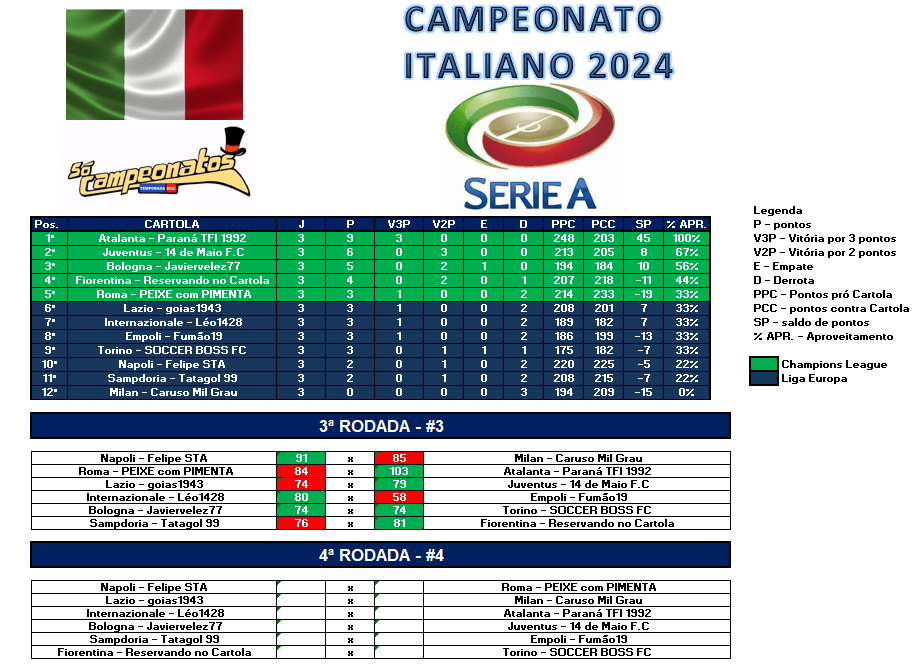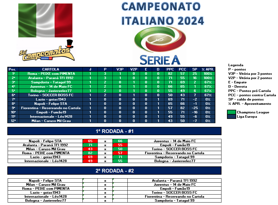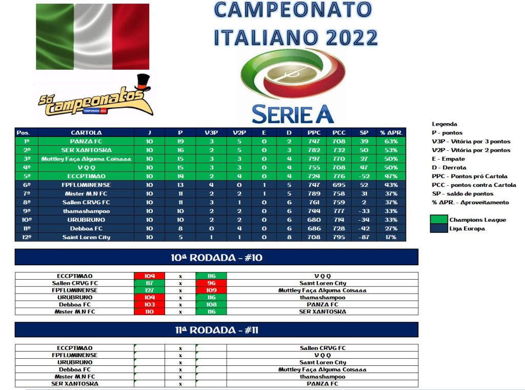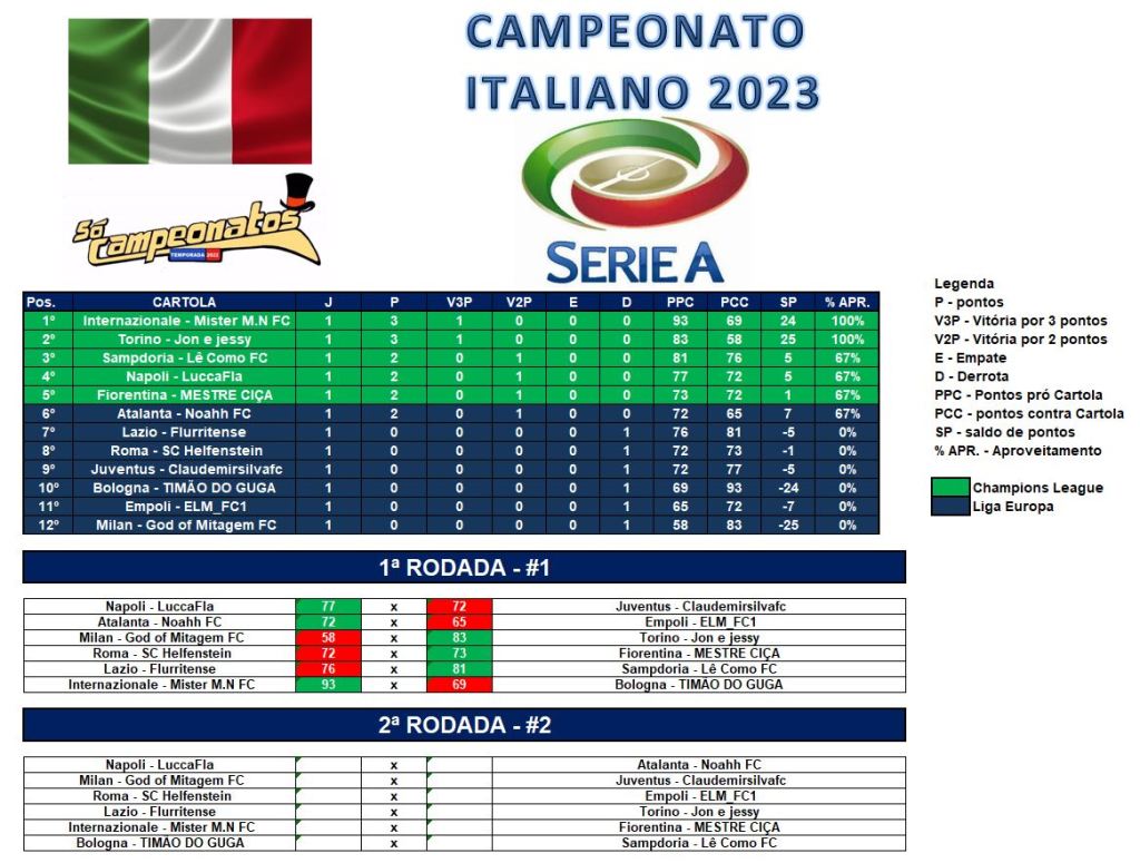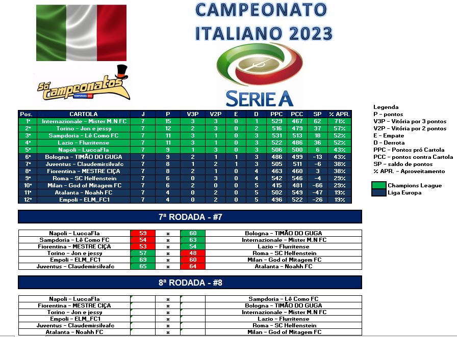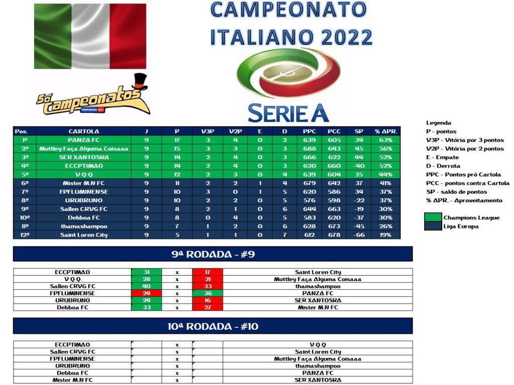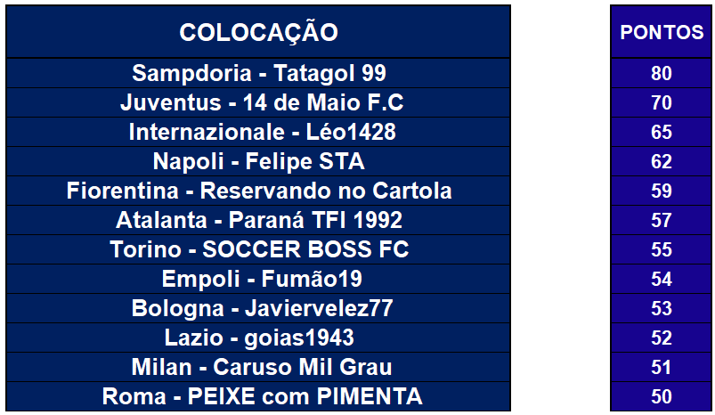 CLASSIFICAÇÃO CAMPEONATO ITALIANO