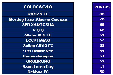 TABELA PONTOS CORRIDOS SOCAMPEONATOS