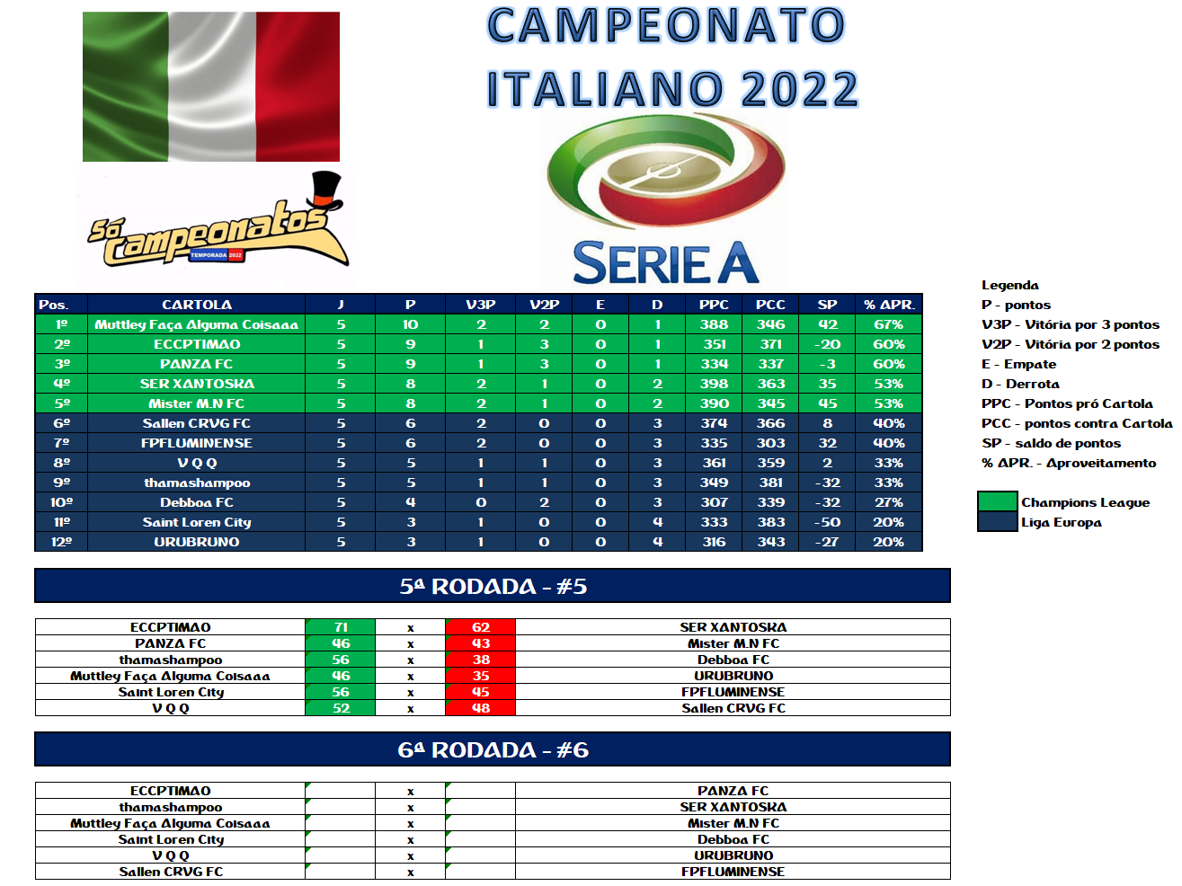 CLASSIFICAÇÃO CAMPEONATO ITALIANO