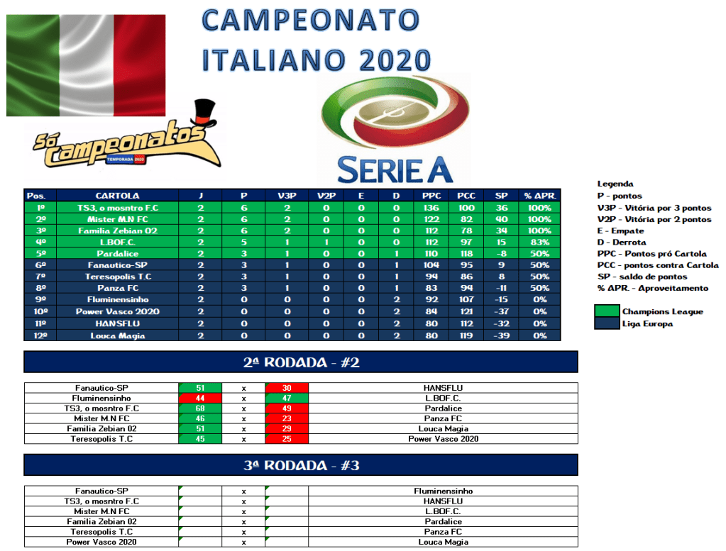 3 – O Campeonato Italiano começará na 1ª rodada e terminará na 11ª rodada do brasileirão;