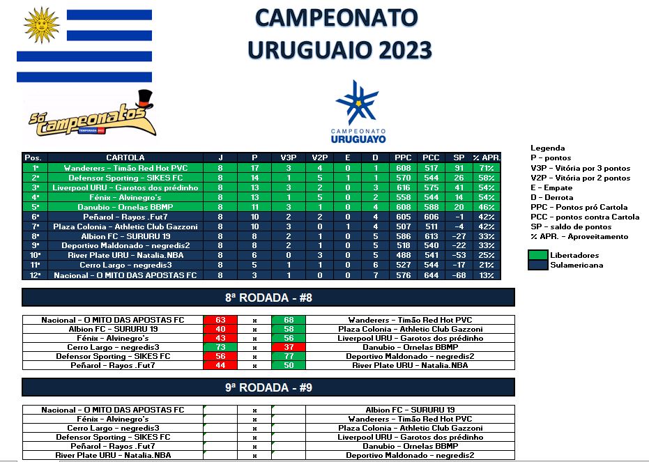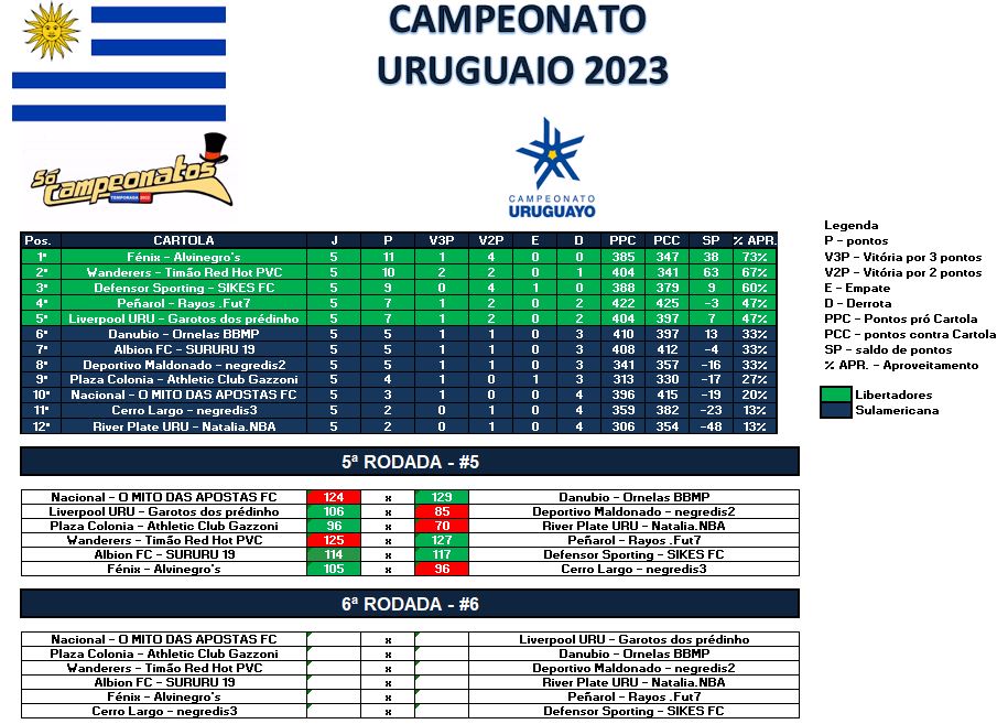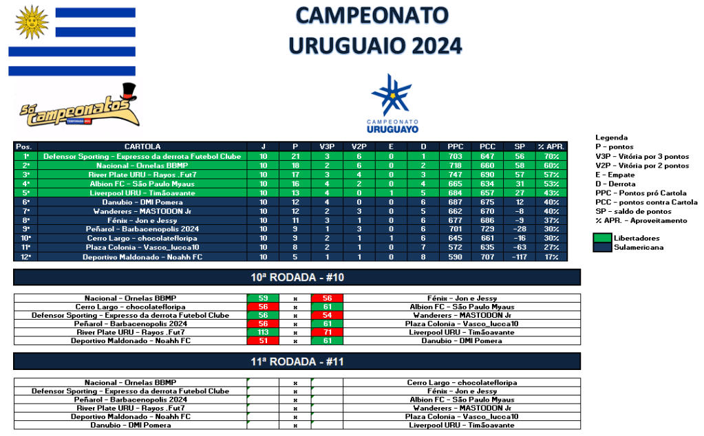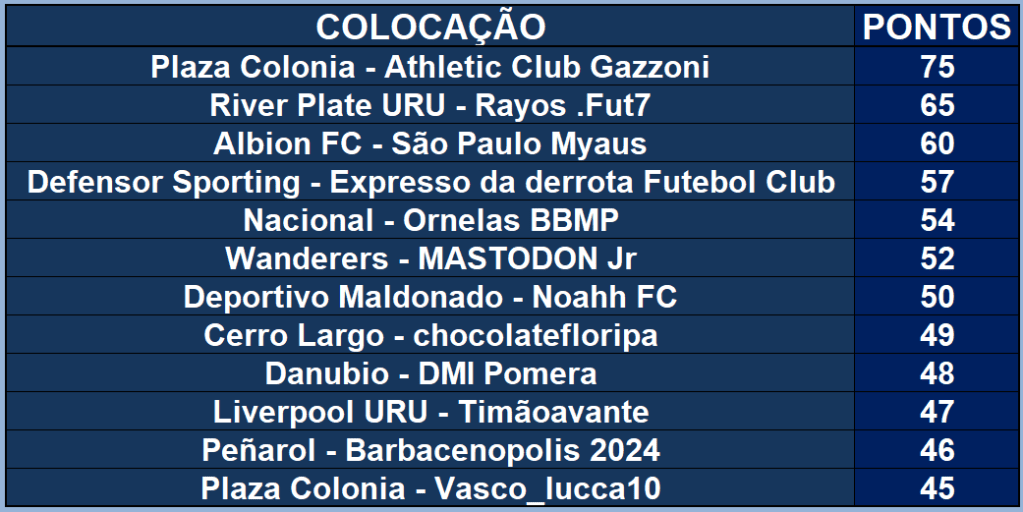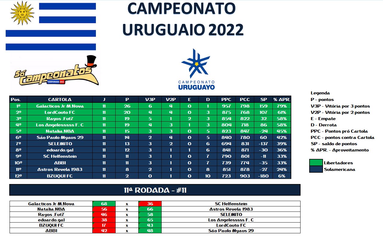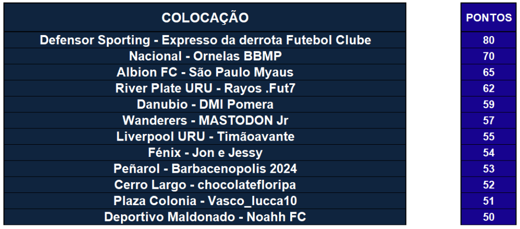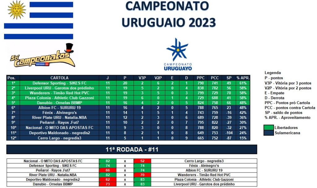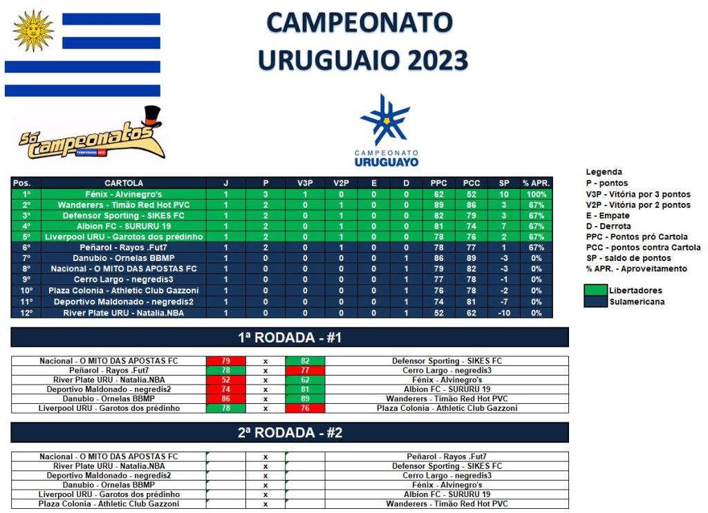 • CLASSIFICAÇÃO CAMPEONATO URUGUAIO