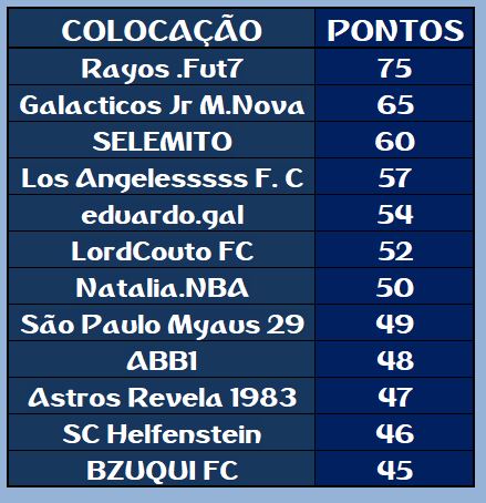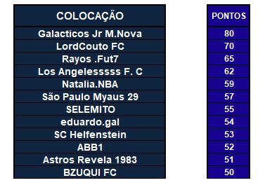 • CLASSIFICAÇÃO DISPUTAS DOS CAMPEONATOS