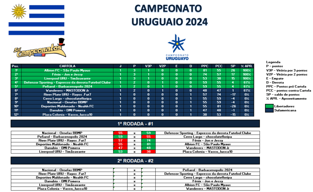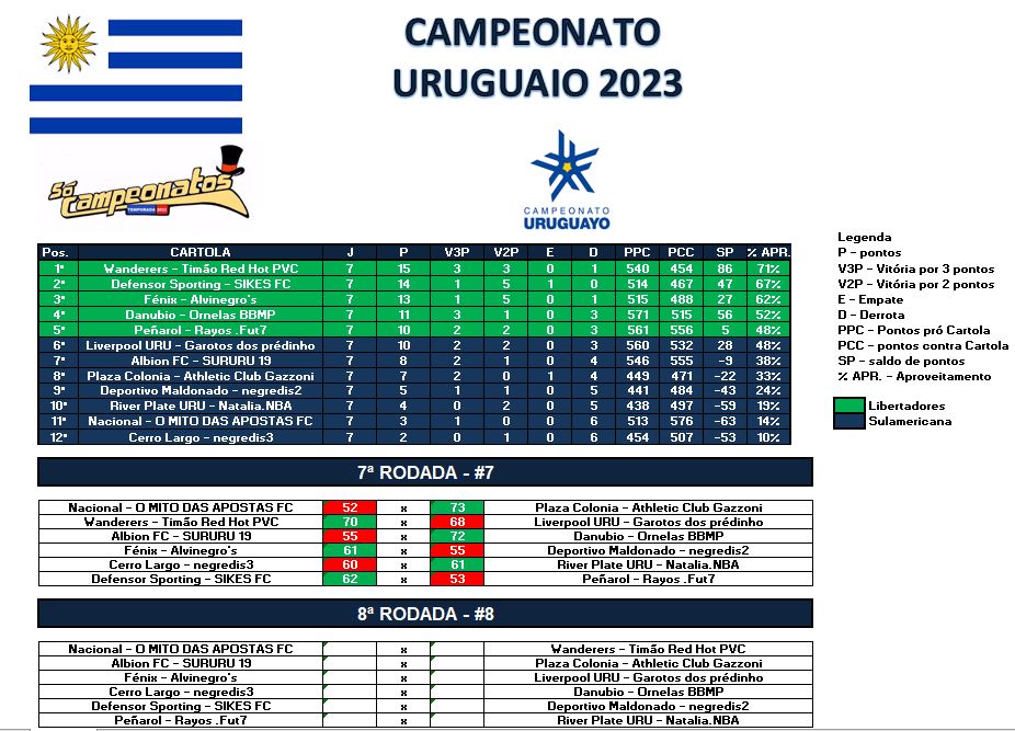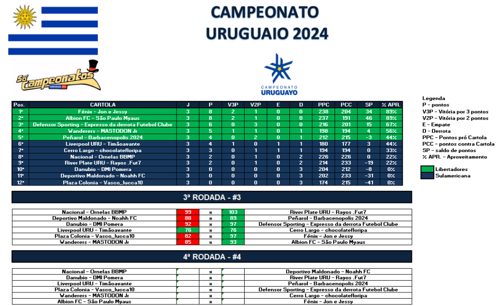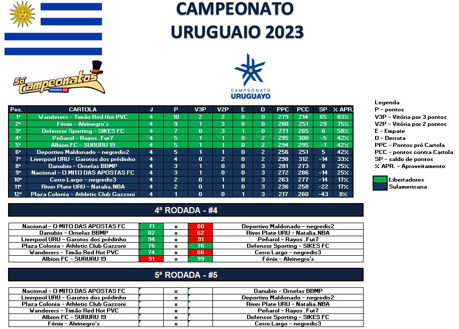 • CLASSIFICAÇÃO COPA DO URUGUAI
