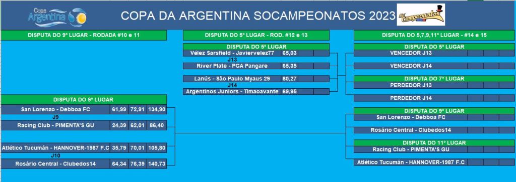 COPA DA ARGENTINA – QUARTAS DE FINAIS e DISPUTA DO 9º LUGAR – VOLTA Publicado em 23/06/2023 por socampeonatos