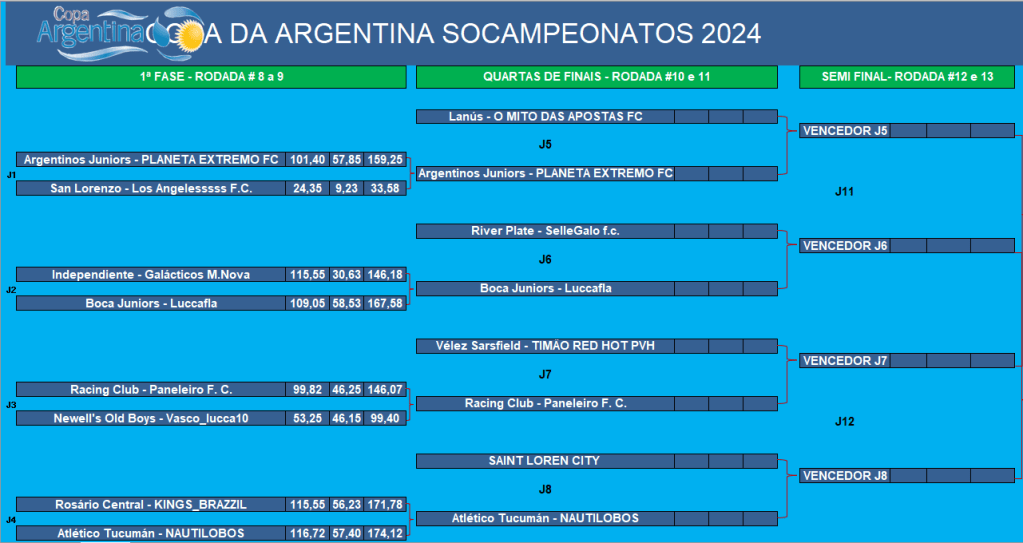 COPA DA ARGENTINA – QUARTAS DE FINAIS E DISPUTA DO 9º LUGAR – IDA Publicado em 10/06/2022 por socampeonatos