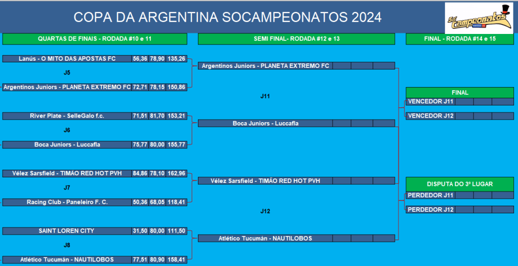 COPA DA ARGENTINA – SEMI FINAL e DISPUTA DO 5º LUGAR – VOLTA Publicado em 02/07/2024 por socampeonatos
