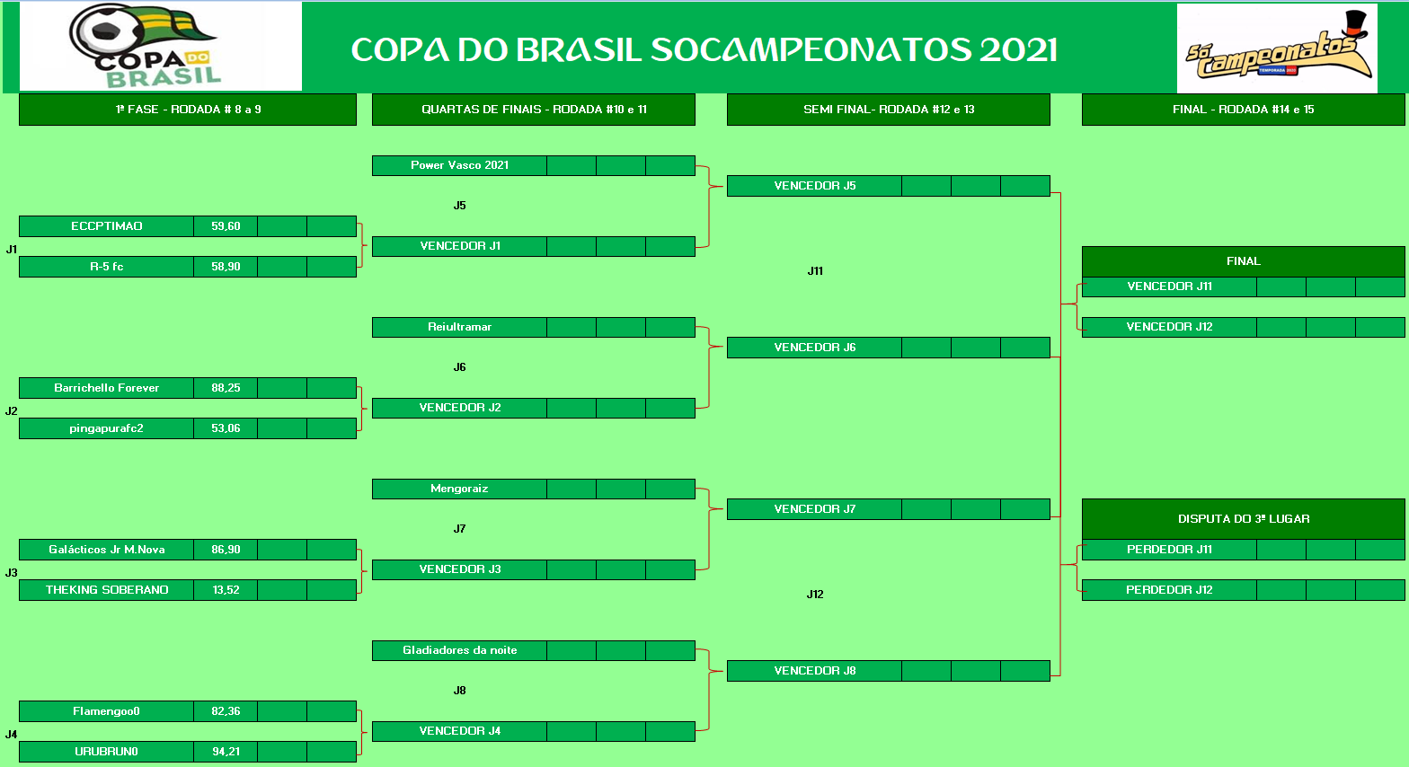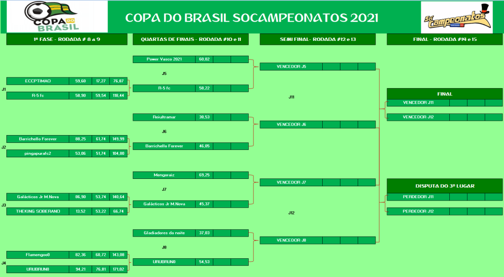 COPA DO BRASIL – QUARTAS DE FINAIS E DISPUTA DO 9º LUGAR – IDA Publicado em 09/07/2021 por socampeonatos
