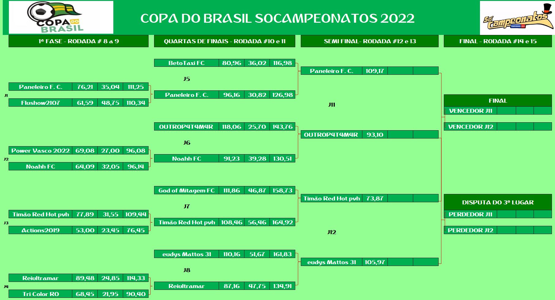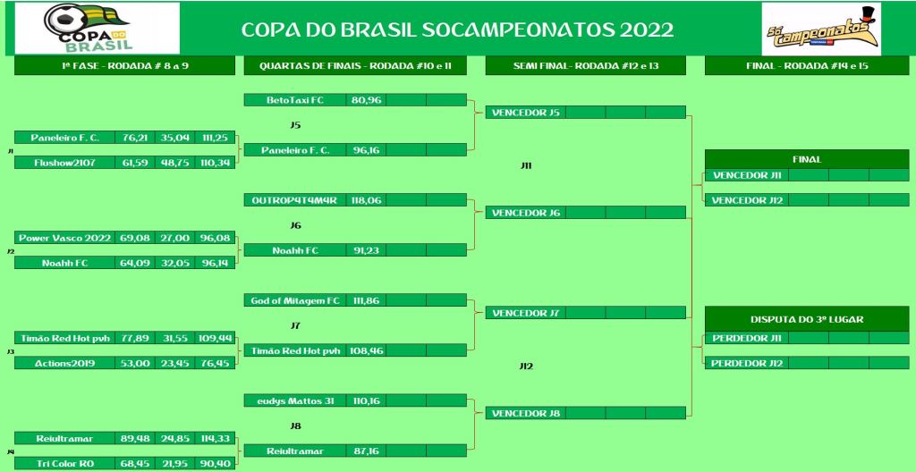 COPA DO BRASIL – QUARTAS DE FINAIS E DISPUTA DO 9º LUGAR – IDA Publicado em 10/06/2022 por socampeonatos