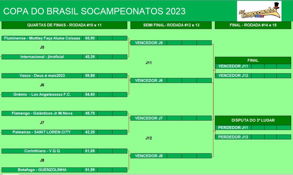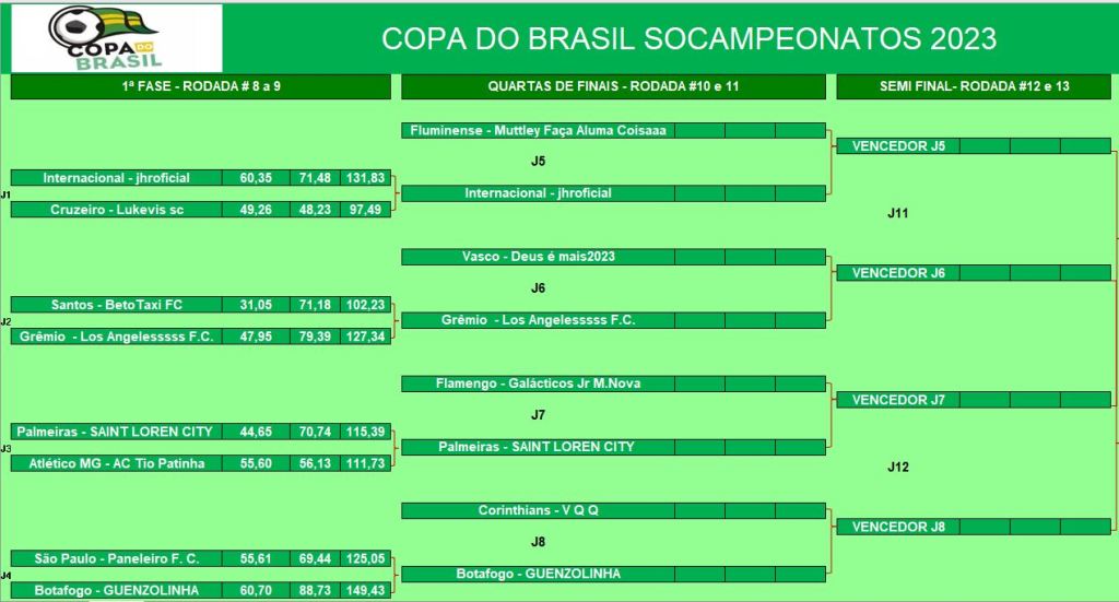 COPA DO BRASIL – QUARTAS DE FINAIS e DISPUTA DO 9º LUGAR – IDA Publicado em 12/06/2023 por socampeonatos