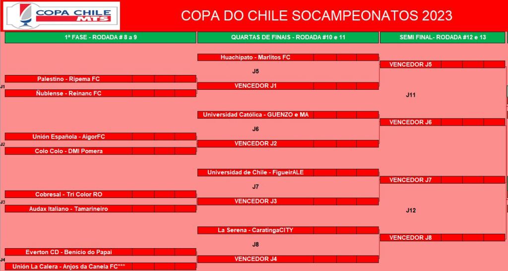 COPA DO CHILE – QUARTAS DE FINAIS e DISPUTA DO 9º LUGAR – IDA Publicado em 12/06/2023 por socampeonatos