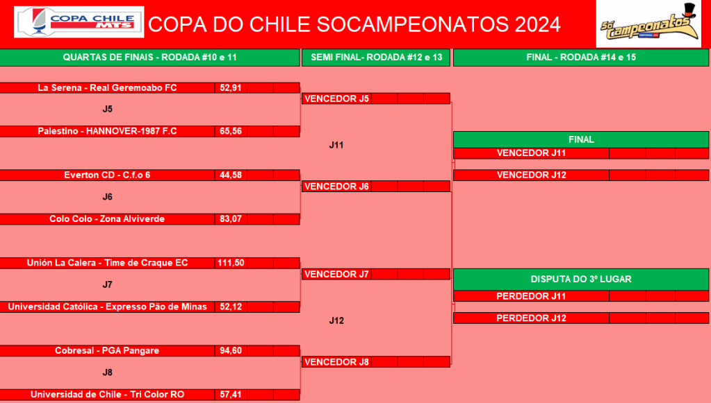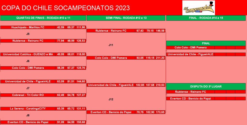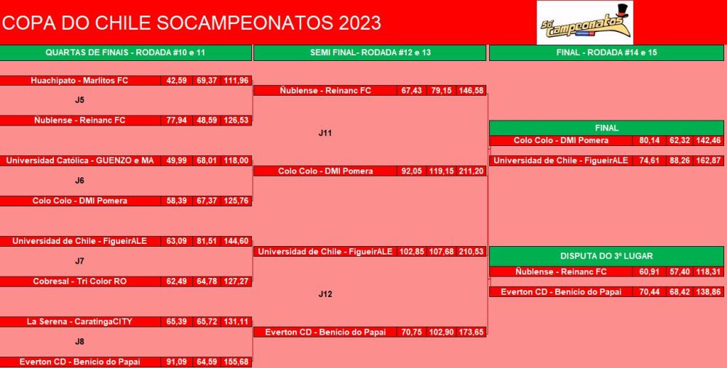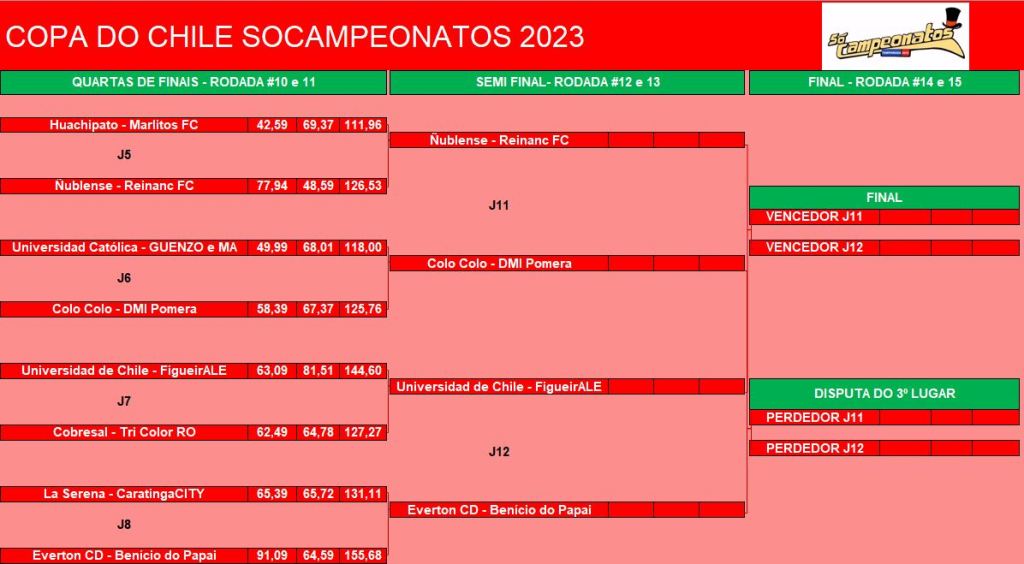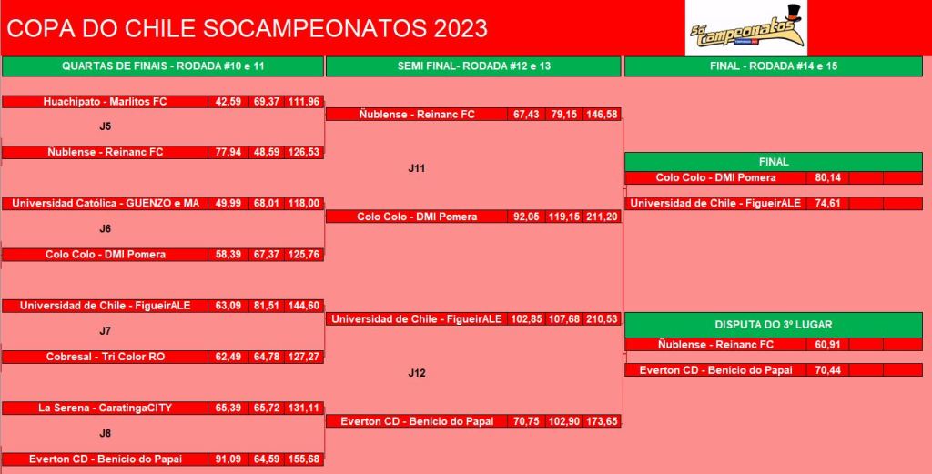 COPA DO CHILE – QUARTAS DE FINAIS e DISPUTA DO 9º LUGAR – VOLTA Publicado em 23/06/2023 por socampeonatos