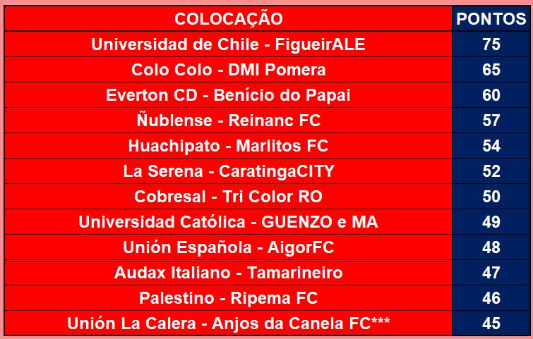 COPA DO CHILE – FINAL E DISPUTA DO 3º,5º,7º,9º,11º LUGAR – VOLTA Publicado em 10/08/2021 por socampeonatos