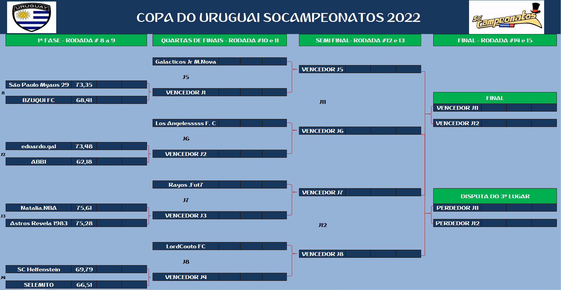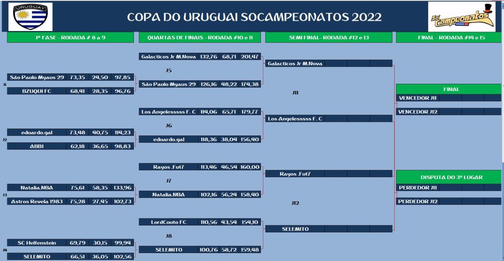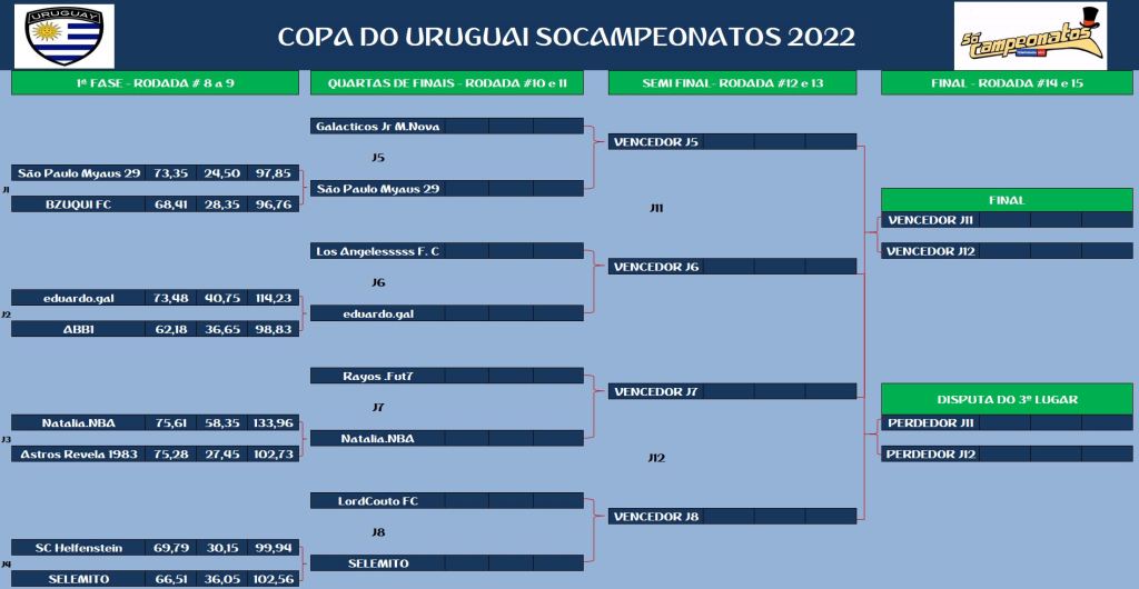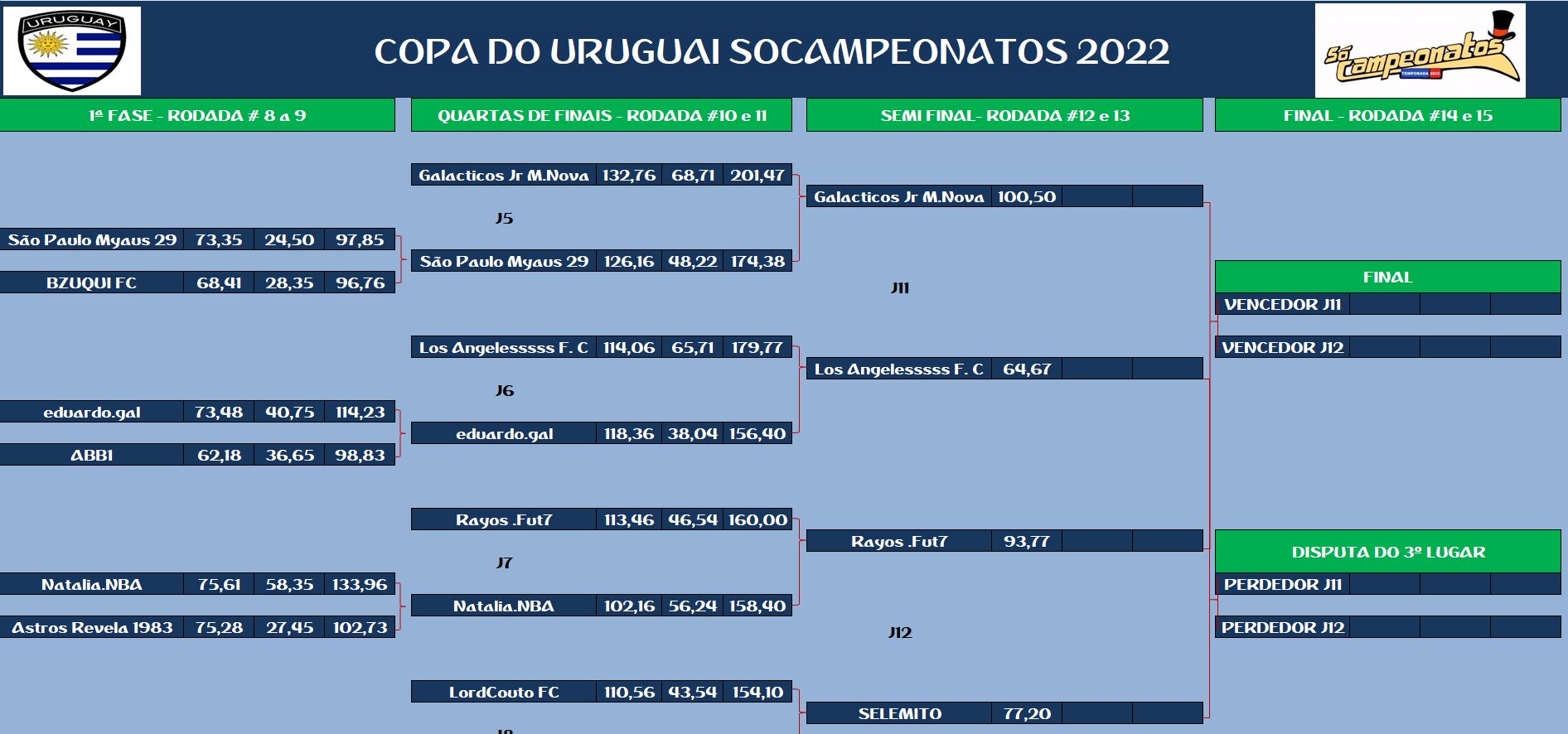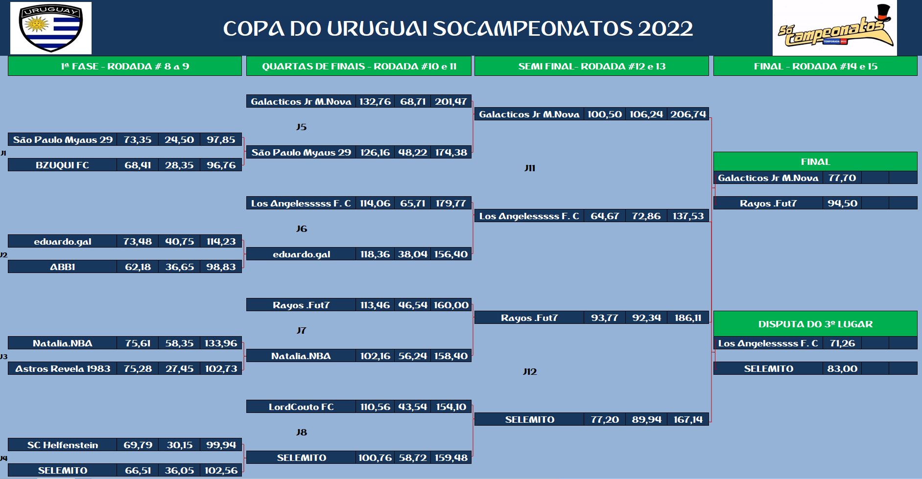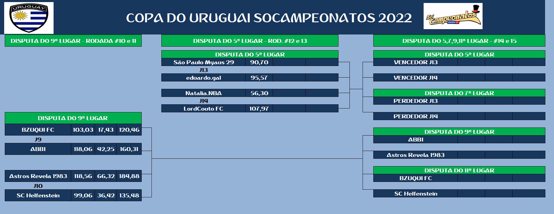 COPA DO URUGUAI – QUARTAS DE FINAIS E DISPUTA DO 9º LUGAR – IDA Publicado em 10/06/2022 por socampeonatos