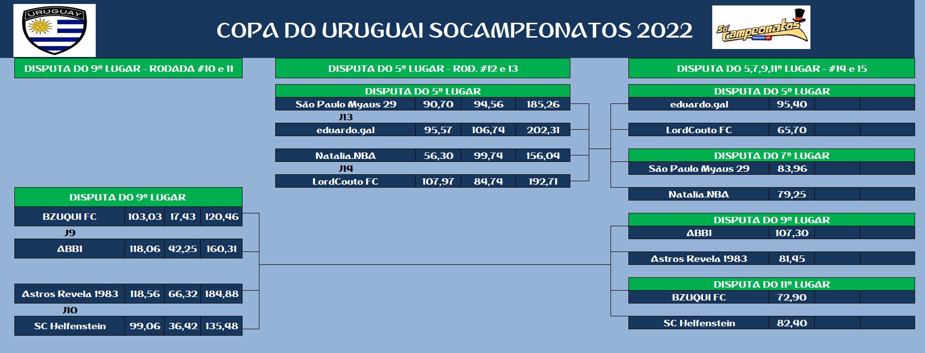 COPA DO URUGUAI – QUARTAS DE FINAIS – DISPUTA DO 9º LUGAR – VOLTA Publicado em 14/06/2022 por socampeonatos