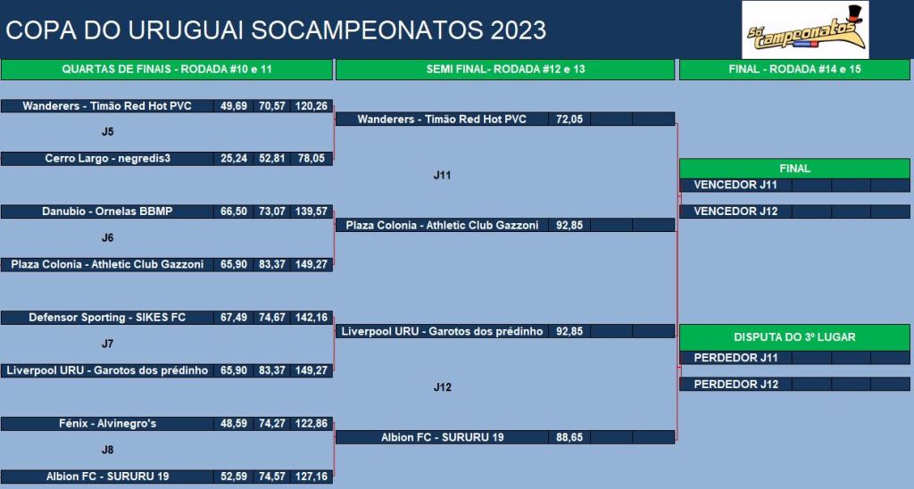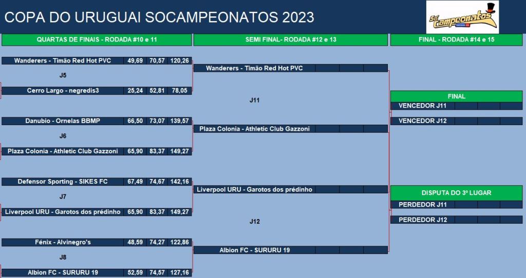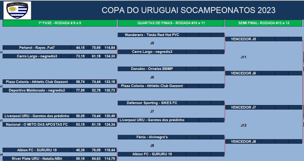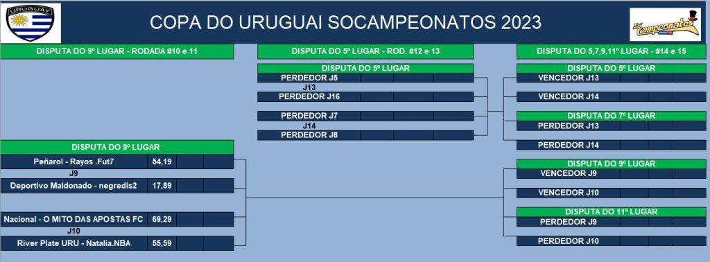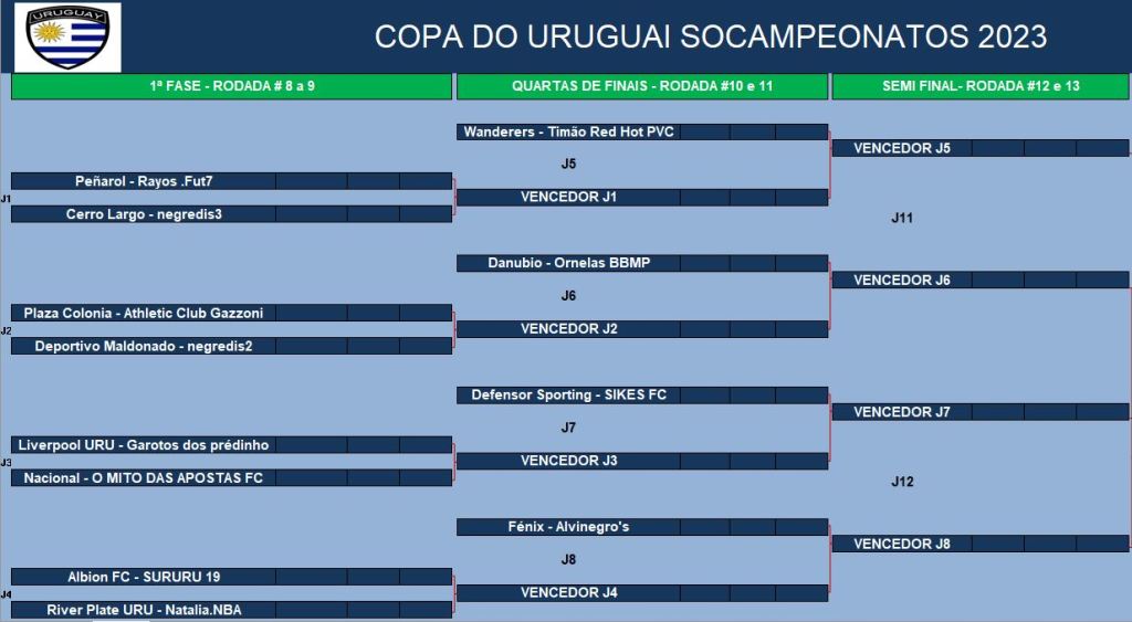 COPA DO URUGUAI – QUARTAS DE FINAIS e DISPUTA DO 9º LUGAR – VOLTA Publicado em 23/06/2023 por socampeonatos