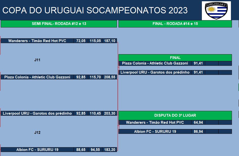 COPA DO URUGUAI – FINAL e DISPUTA DO 3º,5º,7º,9º,11º LUGAR – VOLTA Publicado em 18/07/2023 por socampeonatos