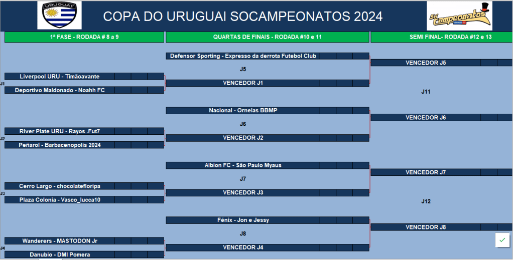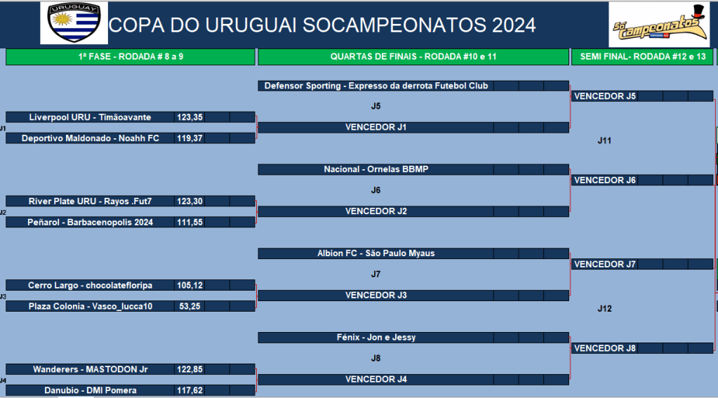 COPA DO URUGUAI – QUARTAS DE FINAIS e DISPUTA DO 9º LUGAR – IDA Publicado em 12/06/2023 por socampeonatos