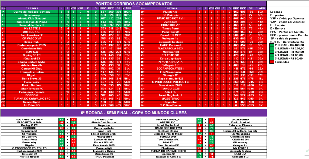 PONTOS CORRIDOS SOCAMPEONATOS – RODADA 6