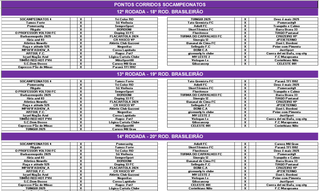PONTOS CORRIDOS SOCAMPEONATOS – RODADA 14
