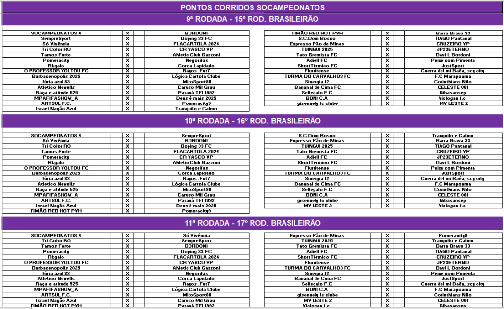 PONTOS CORRIDOS SOCAMPEONATOS – RODADA 9