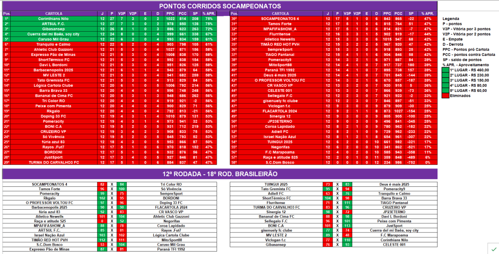 PONTOS CORRIDOS SOCAMPEONATOS – RODADA 12