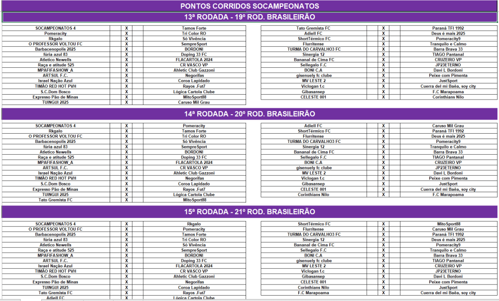 PONTOS CORRIDOS SOCAMPEONATOS – RODADA 13