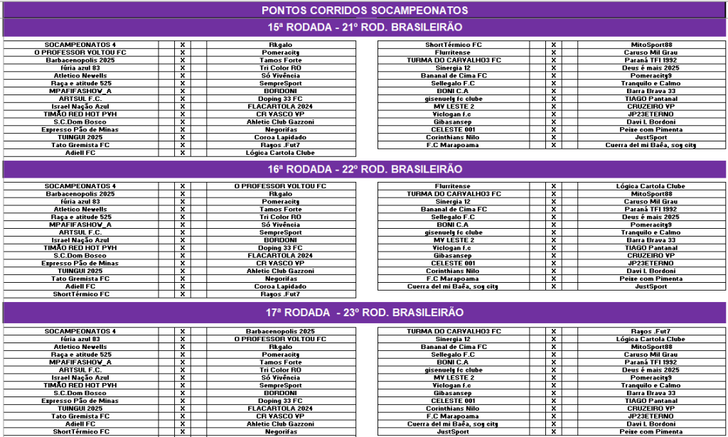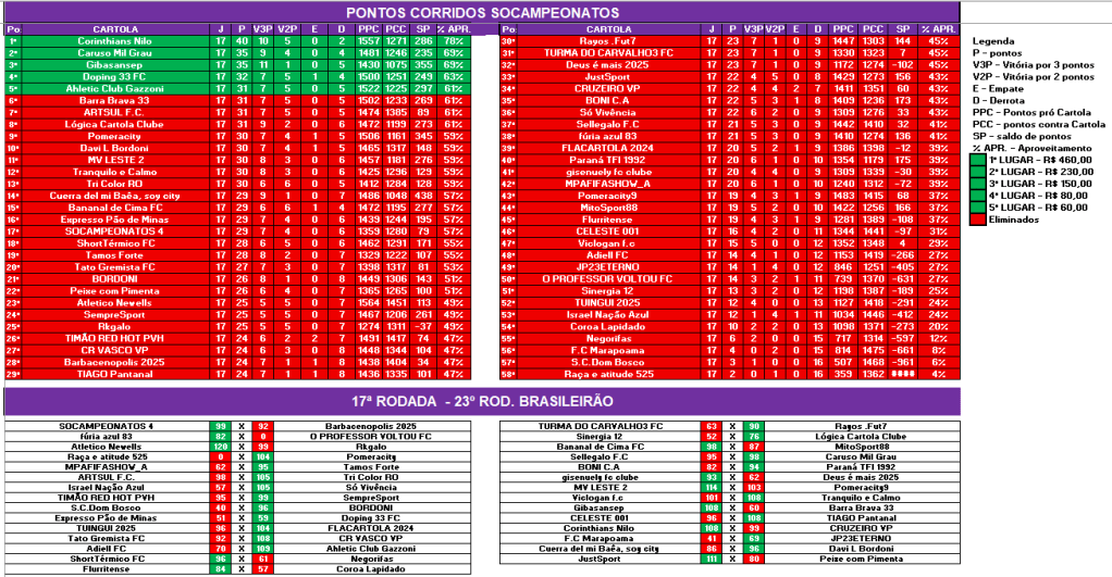 PONTOS CORRIDOS SOCAMPEONATOS – RODADA 17