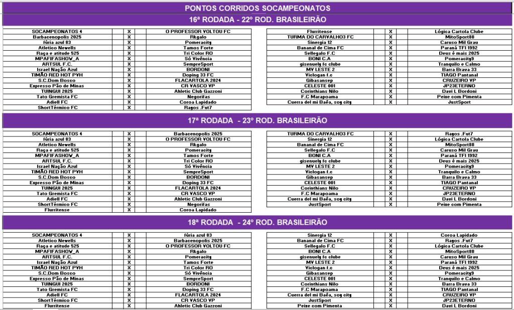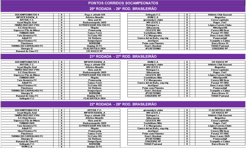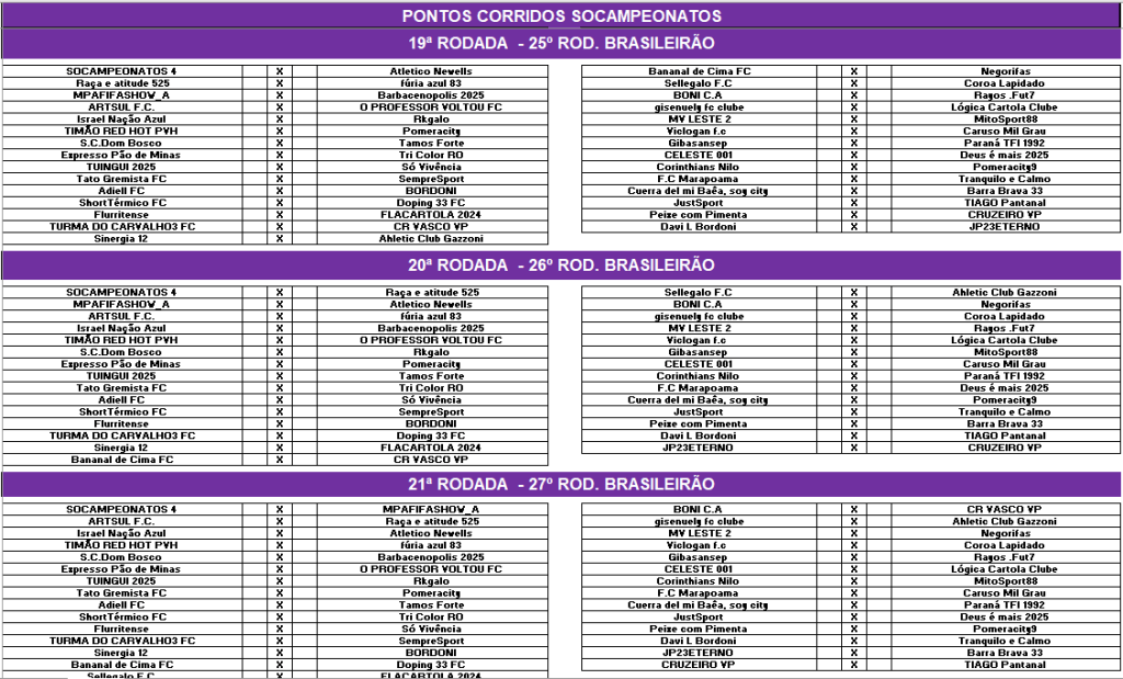 PONTOS CORRIDOS SOCAMPEONATOS – RODADA 25