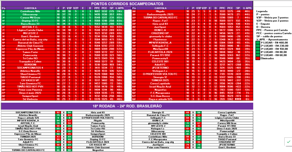 PONTOS CORRIDOS SOCAMPEONATOS – RODADA 18